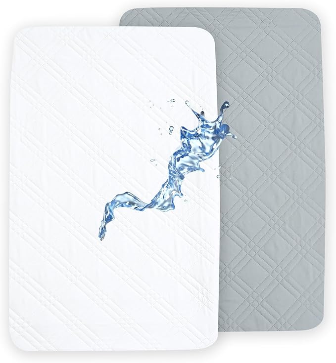 Waterproof Mini Crib Mattress Protector 2 Pack, Ultra Soft Breathable Mini Crib Mattress Pad Cover for Boys Girls Neutral, Fit Pack N Play, Playard and Mini Crib Mattresses, White & Grey