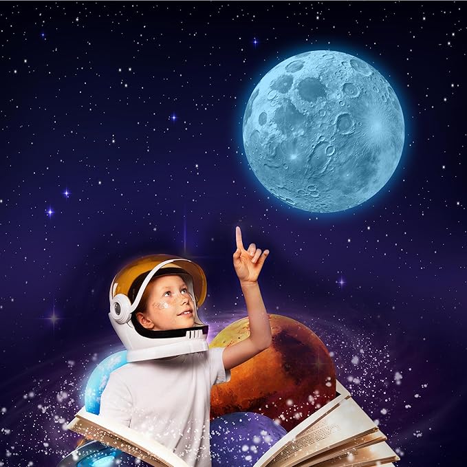 - Sweet Dream for Kids - Our glowing moon will create a calm and more relaxed environment to fall asleep in. Let your kids lie down and gaze at an illuminated moon which gets more dramatic with the darkness – not only does it help your children fall asleep but also helps take away their fear of darkness.