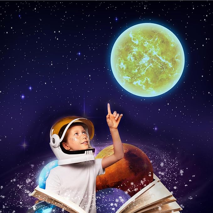 - Robmoda Glow in The Dark Planet - One piece of sun sticker made up of non-toxic, eco-friendly, waterproof, pressure resistant, shock resistant& durable fluorescent PVC. It comes in 23.5 cm (9.25”).