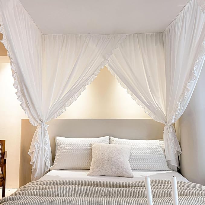 AIKASY Princess Canopy Bed Curtains with Top Ties - Windproof & Lightproof for Girls' Adult Bedroom Decor | Bed Canopy Drapes (Full,White)