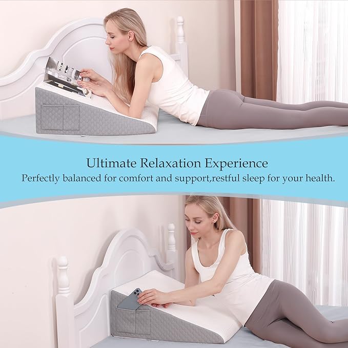 - 【BREATHABLE AND WASHABLE COVER】: The bed wedge pillow comes with breathable, removable and machine washable cover and certified by Oeko-Tex Standard 100. The cover is detachable and machine washable for easy maintenance and long-lasting use.