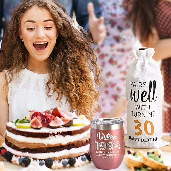 - [30 YEAR OLD BIRTHDAY GIFTS FOR WOMEN] - Using our high-quality 12 ounce stainless steel wine glasses, immerse yourself in the essence of nostalgia and elegantly showcase the "Vintage 1994 Limited Edition Aged to Perfection" design. This tumbler is not just a 30th birthday wine tumbler; This is a period of history aimed at celebrating the milestone of outstanding individuals born in 1994 turning 30.