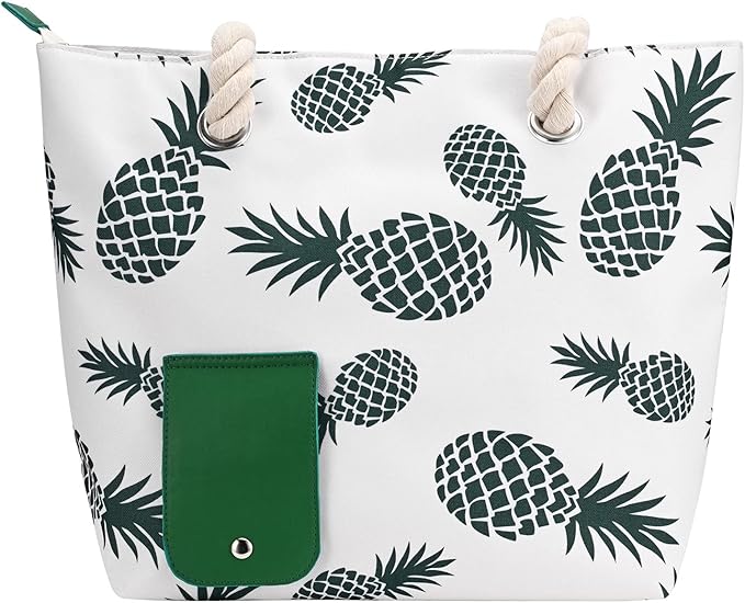 • LARGE BEACH BAG:Size at L16.54"xH13.39"xW5.5",Fully functional design with a stylish lined interior with side pockets, there is enough space to keep your lipsticks,cosmetics,beach towel,beach hat,flip flop,sunscreen and sunglasses,swimsuit and other necessities.