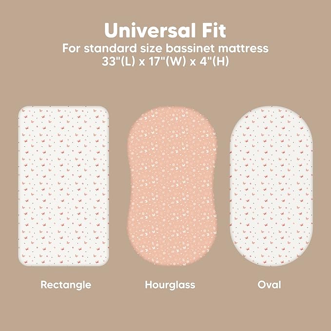 - 2-Pack Bassinet Fitted Sheets - KeaBabies Soothe Bassinet Mattress Sheets, sized at 33" x 17" with a depth of up to 4", provide a universal fit for all bassinet mattress pad types. They can be used as hourglass, oval, rectangle bassinet sheets.