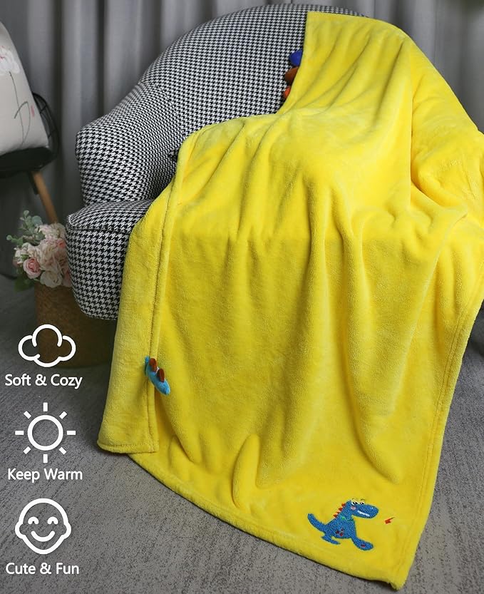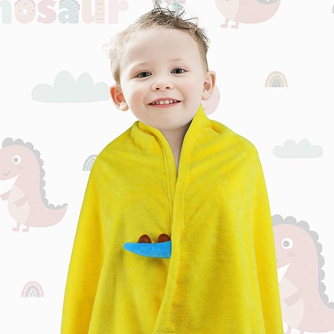 Kids Beach Towels Cute 3D Embroidery Dinosaur Super Absorbent Warm Coral Fleece Blanket Pool Bath Towel Wrap for Boys Girls, Measures 53.5 x 29.3 Inches
