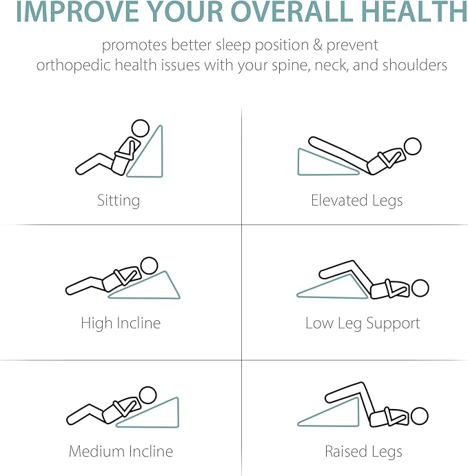 - Multi-Purpose: Rest up in comfort with the pillow as a body positioner, with many different ways of use. The wedge pillow keep you comfortable while reading, working on a laptop, or watching tv in bed. It's also ideal for elevating the legs for increased circulation and varicose vein relief.