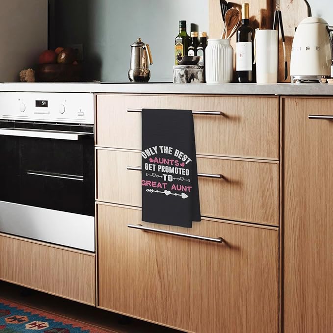 Voatok Promoted to Great Aunt Kitchen Dish Towels 16x24 - Great Aunt Gifts, Great Aunt Baby Announcement Hand Towels for Bathroom Kitchen, Aunt