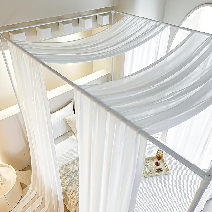 AIKASY White Bed Canopy Scarf for Full/Queen - Luxury Sheer Canopy Bed Curtains with Light - Suitable for Four-Poster Bed, Metal Bed Frame, Wood Bed Frame -2pic