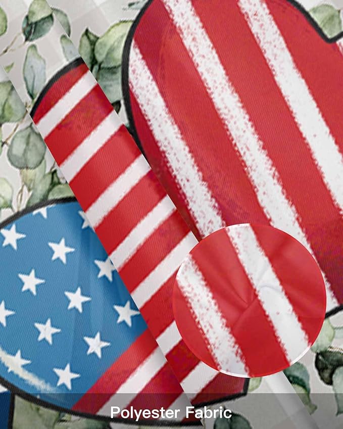 Vandarllin Eucalyptus 4th of July Kitchen Curtains Valances for Windows Patriotic American Flag Stars Rod Pocket Window Treatment for Kitchen/Living Room/Bedroom/Bathroom, 42" X 12", Grey Gingham
