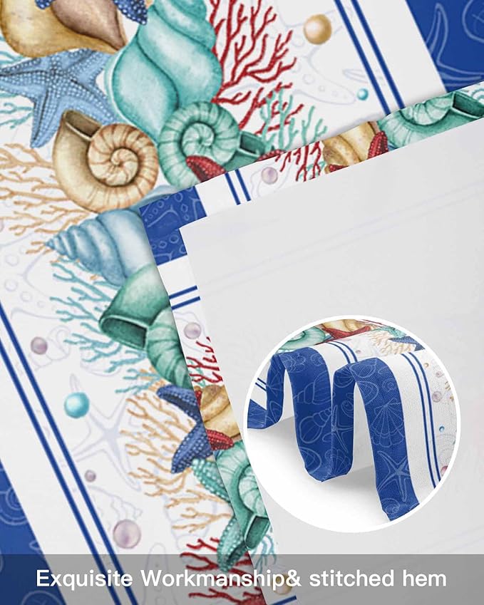 Vandarllin Coastal Beach Kitchen Curtains Valances for Windows Nautical Ocean Seashell Coral Starfish Rod Pocket Window Treatment for Kitchen/Living Room/Bedroom/Bathroom, 42" X 18", Blue Teal Summer