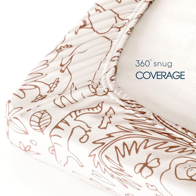 Stretchy Ultra Soft Jersey Knit Pack n Play Sheets Set 2 Pack, Portable/Mini Crib Sheets for Boys and Girls, Universal Fit for Pack N Plays Safe and Snug, Stylish Playard Sheets of Cute Animals Print