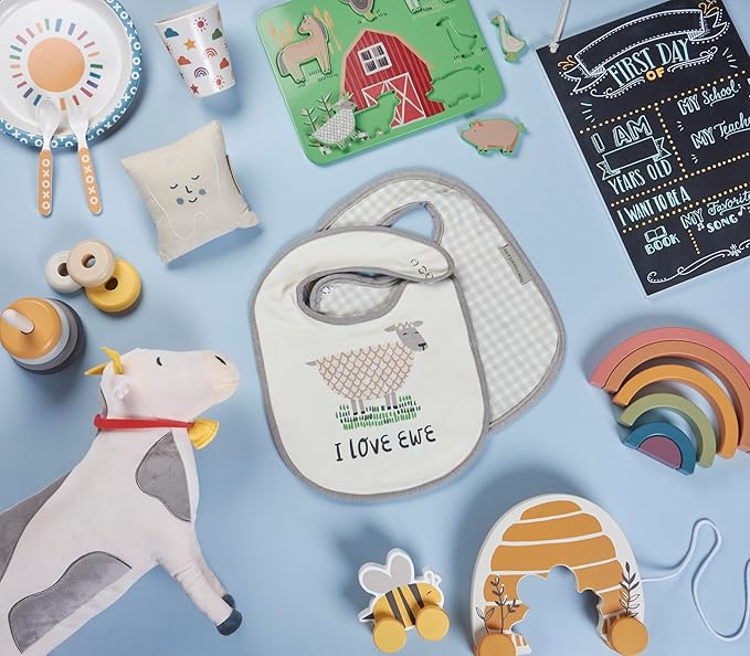 - FUN FARM THEME: Charming cow design with embroidered details and bell accent