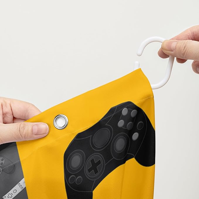 AILONEN Gaming Shower Curtain,Orangish Ball Sports Bathroom Shower Curtain for Boys Kids Teens, 48" W*72" H Gaming Gamer Theme Shower Curtain Sets for Bathroom