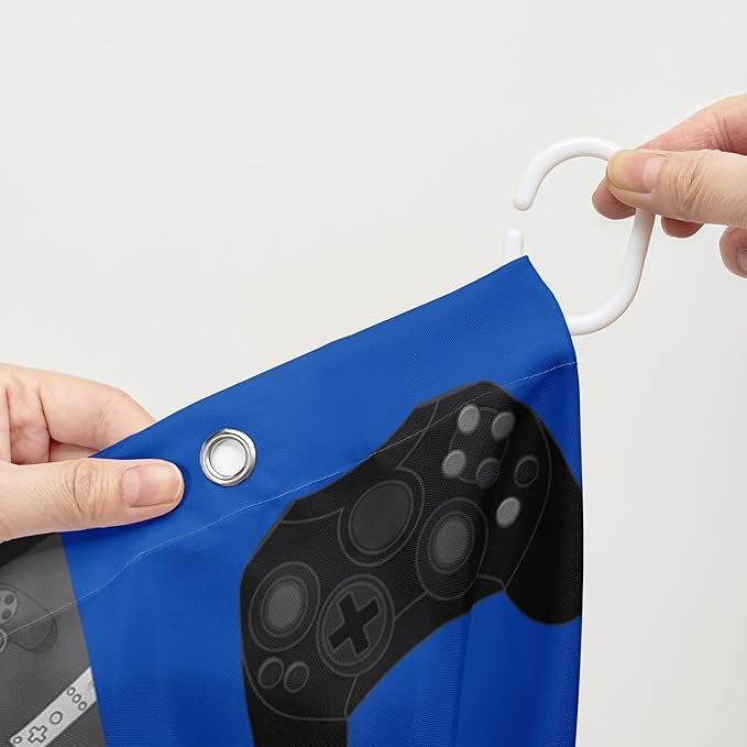AILONEN Gamepad Shower Curtain,Navy Blue Ball Sports Bathroom Shower Curtain Sets for Boys Kids Teens, 48" W*72" H Gaming Gamer Theme Shower Curtain for Bathroom