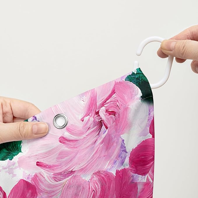 - ?�Easy Installation & Maintenance?‘ðŸ”?Each shower curtain includes 12 hooks, making installation a breeze. The reinforced buttonholes ensure secure and stable hanging, preventing the curtain from slipping or falling. They are designed for hassle-free machine washing and quick drying, allowing you to enjoy a fresh and clean shower curtain whenever needed. ??/li>