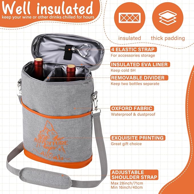 - Wedding and Anniversary Gift: this wine bottle carrier set is an ideal present for wine enthusiasts who enjoy pursuits like traveling, picnicking, hiking, camping, or visiting the beach; Consider arranging a peaceful weekend escape with your partner to unwind and de stress; This wine bag is conveniently designed to carry your preferred wine and picnic treats