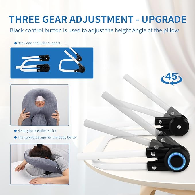 - New Upgraded Face Down Pillow - Our after-surgery pillow has been modified and improved many times, with a reinforced bracket and three-level adjustment to provide the most comfortable face-down pillow. The face pillow includes cotton filling and has an invisible zipper to adjust the cotton according to your needs, keeping it soft and comfortable when you use it.