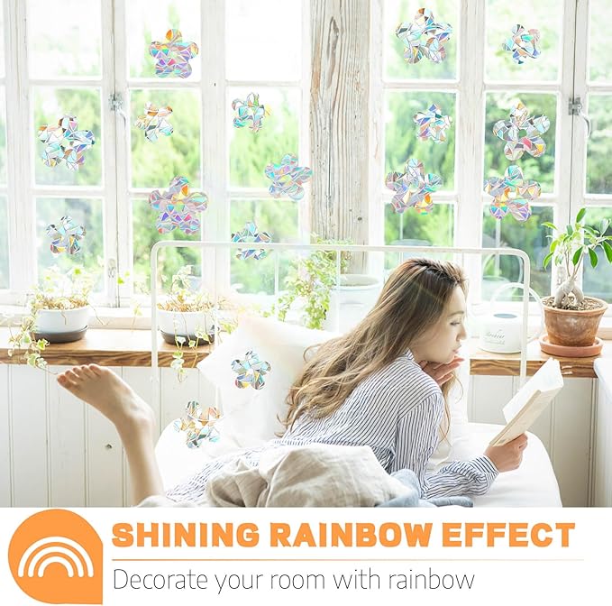 - 【Package Include】The package contains 65pcs floral-shaped window stickers made of transparent prismatic vinyl that convert the sun's rays into a stunning rainbow in your room.