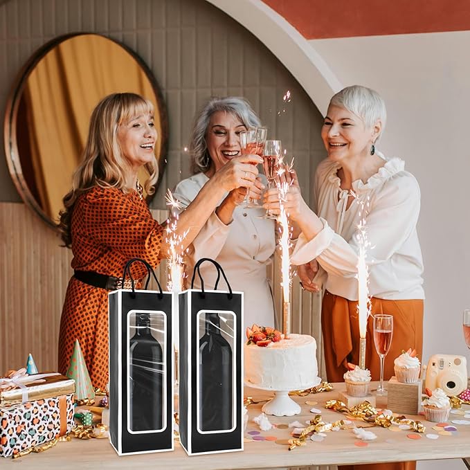 - 2.Wine Bag Set:You will receive 20 pieces of wine gift bags with window and handle,the quantity can meet your daily requirements for holding wine bottles, and you can share them with your guests at parties.