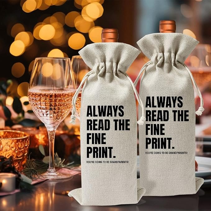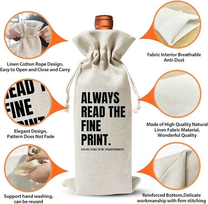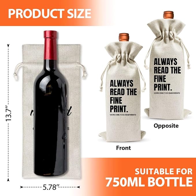 Grandparents Gifts Wine Bag,Baby Announcement Wine Gift Bags Gift For New Grandpa Grandma Grandparents Aunt Uncle, Baby Announcement Cotton Burlap Wine Bag