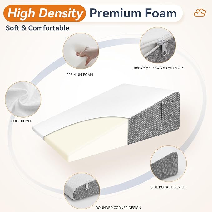 - [Convenient Features] - Sports a breathable and removable cover, our wedge pillow could help you stay refreshed all the time. The knitted air layer fabric of the elevated pillows for sleeping ensures breathability, promoting air circulation to maintain a cool and comfortable sleep experience. The removable wedge pillow cover also allows for convenient machine washing, ensuring hygienic and convenient maintenance.