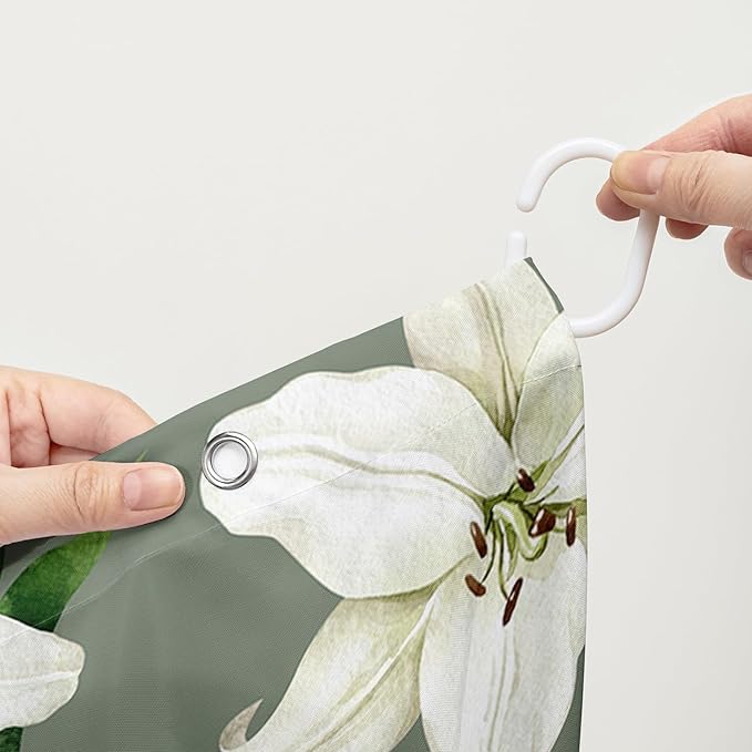 AILONEN Flower Shower Curtain, Vintage Garden Lilies Theme Waterproof Fabric Shower Curtain Set,Green Spring Flowers Bathroom Decor for Teen Girls Women,60" W*72" H