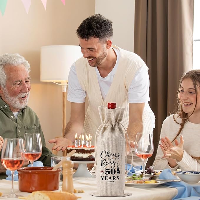 - 【50th Birthday Gifts Ideas】Don't just stop at 50th birthday wine bag bottles! This fun 50th birthday wine bag is the perfect addition to a birthday party, and also it's a perfect gift idea. Because in addition to decorating wine bottles, it can also store various holiday gifts, making every holiday full of ritual, making it a must-have for every holiday you celebrate!