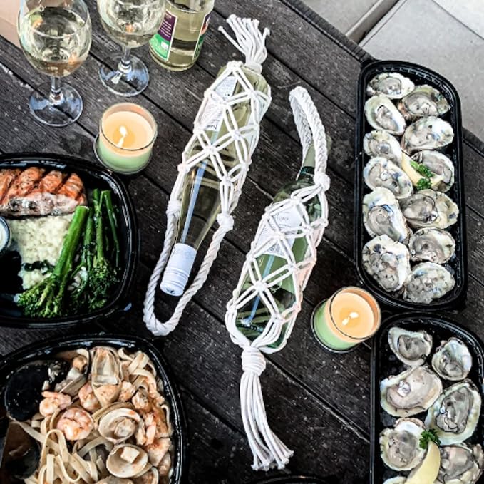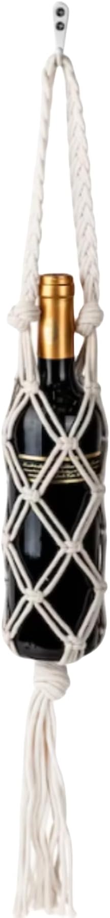 Hand-woven wine storage bag, Bohemian wine hanging bag, Bottle bag, Tote bag, 26 inch (Wine Storage Bag White)