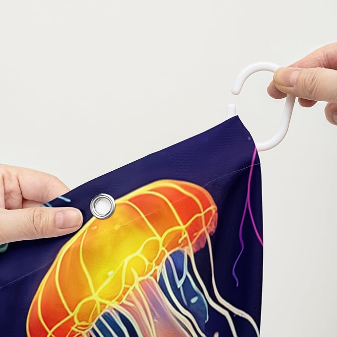 AILONEN Colorful Jellyfish Shower Curtain,Beautiful Jellyfish Bath Curtain Set for Kids Girls,Coastal Animal Fabric Shower Curtains for Bathroom, 72" W*78" H