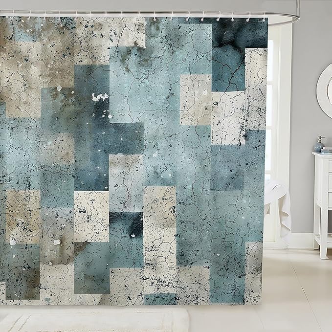 Feelyou Geometric Bath Curtain Geometry Shower Curtain Square Bathroom Shower Curtain Set Kids Toddler Boys Girls Stripe Line Kids Bathroom Accessories 72"x78"