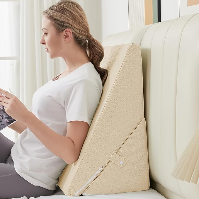 Sasttie Wedge Pillow for Sleep Apnea, 10 Inch Adjustable Bed Wedge Pillow for Back Pain, Acid Reflux Relief, Memory Foam Triangle Pillow Wedge for Sleeping, Post Surgery, Knee Elevation, Beige