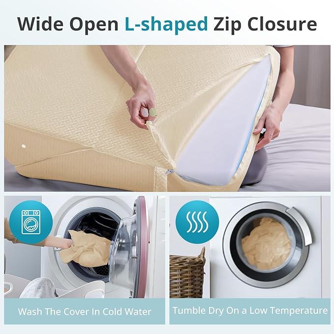 - REMOVABLE & WASHABLE COVER: The SASTTIE incline pillow for sleeping comes with a cover made of premium air layer fabric, ensuring maximum breathability and comfort. Featuring an L-shaped wide-opening zipper, the cover is easy to remove and machine wash, keeping your wedge for bed hygienic and fresh. Enjoy the convenience of maintaining a clean sleep environment with minimal effort.