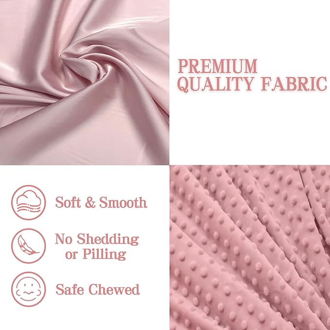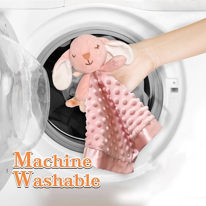 - 🐰【Cognitive Enlightenment】Soft minky plush front and silky satin back provide more tactile sensation for babies and enhance their sense of security and exploration. The pink bunny's features are embroidered, with no plastic filling, taking care of your baby's health.