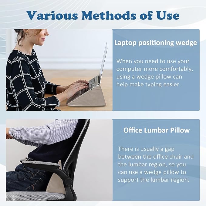 - 【As a Support Pillow in Various Scenes】Wedge pillow can provide you with comfortable support, cushion behind you when you are reading or watching TV; it can be used as a support pillow for your computer laptop, making the use of computer more comfortable. It can be used as a lumbar support pillow in the office to prevent lumbar strain.