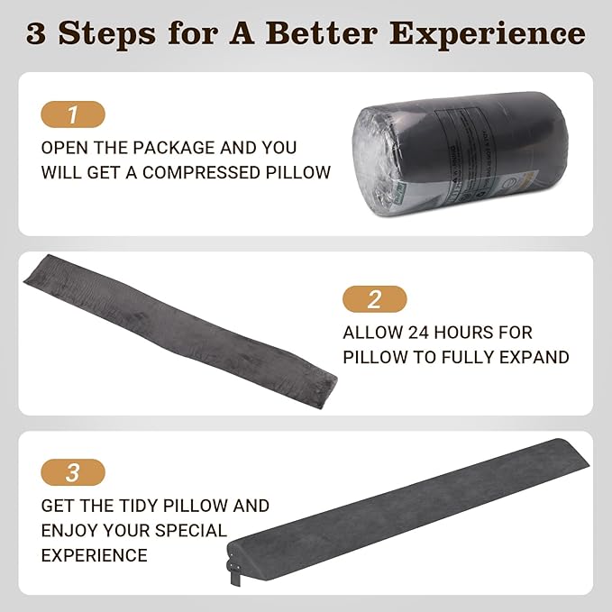 - 【High Density Foam】The headboard wedge pillows are made of premium high-density foam certified by CertiPUR-US, providing excellent durability and support, which will not easily deformed or move when you sleep. (Note: For better transportation, we use compressed packaging. Please LEAVE IT OPEN 24 HOURS after the first opening prior to use to allow it to fully rebound for better use).