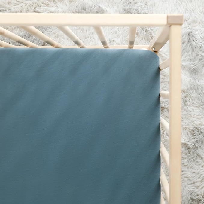 GRSSDER Mini Crib Sheets Fitted, Pack and Play Sheets 2 Pack, Ultra Soft Stretchy Pack N Play Sheets, Universal Fit for Playard Mattress, Jersey Crib Sheets Neutral for Boys and Girls, Blue
