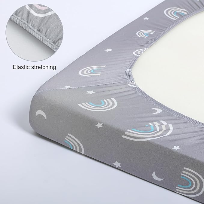 - Flexible convertible play sheet set for your boy or girl, unisex portable mini crib sheet fits a variety of styles of nursery, soft and breathable elastic mini crib sheets expertly woven with the finest 100% microfiber and eco-friendly dyeing process to provide a safe and comfortable sleeping space for your baby