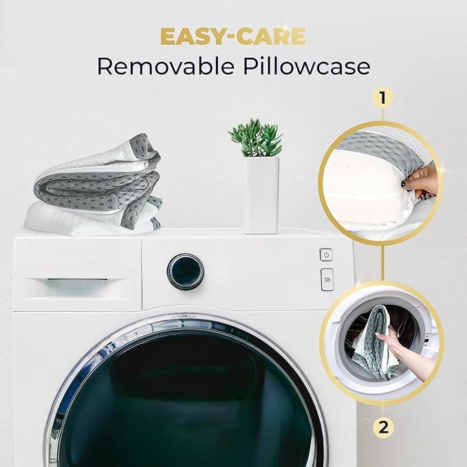 - Designed to offer the perfect balance between soft and firm, our pillow provides optimal neck and spine support. This medium density ensures that whether you sleep on your back or side, you’ll experience the ideal alignment and comfort, reducing the risk of neck and back pain.