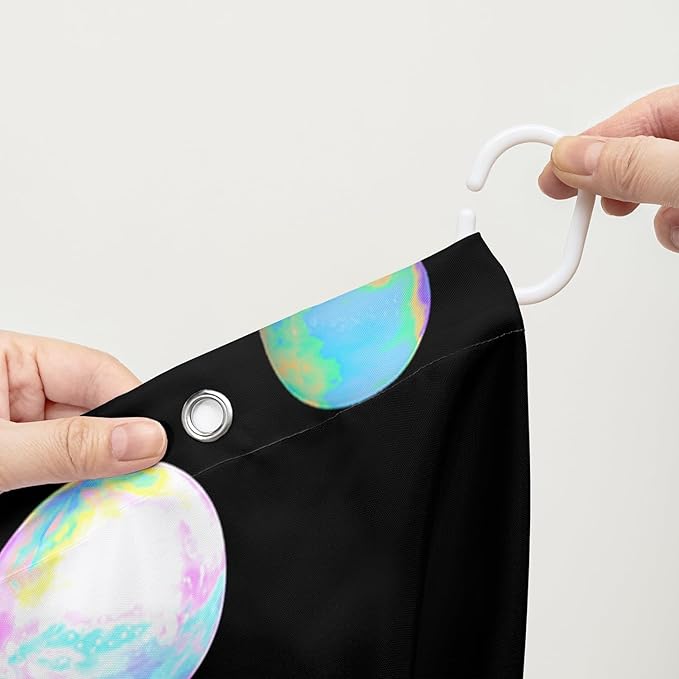 AILONEN Colorful Planet Shower Curtain,Purple Planet Bath Curtain for Bathroom Decor,Polyester Waterproof with 12 Plastic Hooks 48" W*72" H