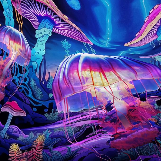 AILONEN Magic Mushroom Shower Curtain,Cartoon Jellyfish Shower Curtain Set for Bathroom,Natural Fungal Bathroom Curtain for Kids Girl,Boho Style Waterproof Fabric Bath Curtain with Hooks, 48" W*72" H