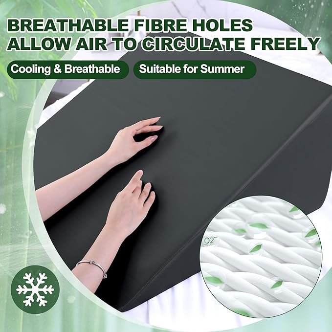 HOMBYS Bamboo Viscose Bed Wedge Pillow Cover with Zipper, 100% Viscose Made from Bamboo, Soft, Cooling, Breathable Wedge Pillowcase Sweat-Absorbent Pillowcase for Summer, 25"x25"x8", Dark Grey
