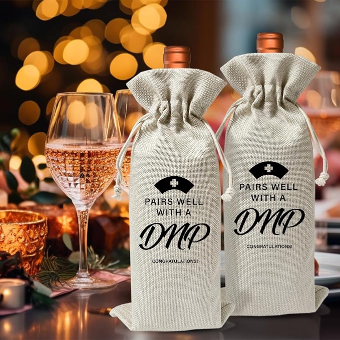 DNP Degree Gift Wine Bag, Nurse Day Nurse Week Gift, Med School Graduation Party Gift For Doctor Nurse, Nursing School Graduation Party Decoration, Cool Gift for Nurse, Reusable Burlap Wine Bag