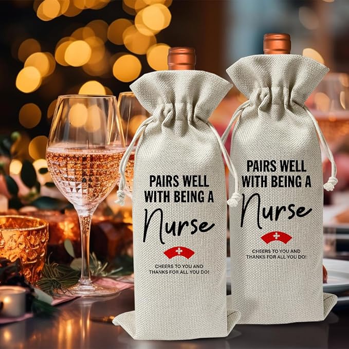 - PREMIUM MATERIAL: This Nurse Wine Bag Is Made Of Cotton Linen Material, With Clear Patterns, Uniform Stitching, Not Easy to Fade, Strong and Durable, Wine Bag With Drawstring Setting, Easy to Close And Open and Keep The Things in Bag Safe and Mystery.