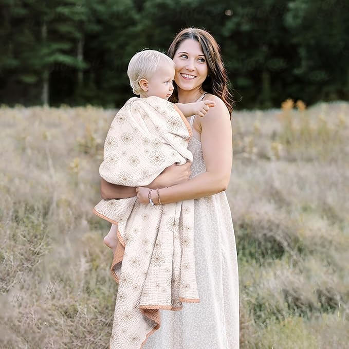 - EASY TO CARE: Our muslin baby blanket is machine washable and tumbles dry, saving you time and giving you more time to play with your baby. The texture is more evident and beautiful after cleaning. Please note that the tolerance for muslin cotton material is approximately +-1inch