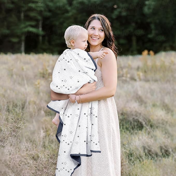 Lulu moon Muslin Quilt Blanket, Crib Blanket for Baby and Toddler,47x47 Inches(Blue Star)