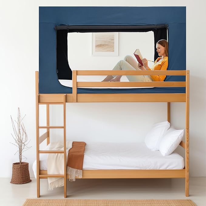 - ☑Cozy Sleeping Space: This bunk twin bed tent measures 75 x 39 x 39 inches, made of breathable and soft polyester fabric. The dark black fabric can reduce most of the light and is great for bedrooms, dorm rooms, or those who have trouble sleeping in bright environments, creating a cozy space to sleep in.