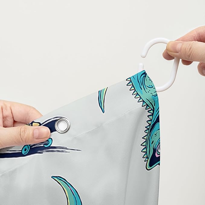 AILONEN Cute Dinosaur Kids Shower Curtain,Sport Cool Dinosaur Bath Curtain Gifts for Boys Teens,Skate Dinosaur Polyester Waterproof for Bathroom with 12 Plastic Hooks 48" W*72" H