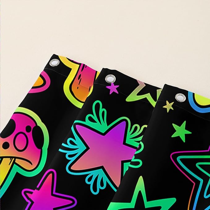 AILONEN Cute Mushroom Window Curtain for Kids,Star Purple Mushroom Curtain for Bathroom Decor,Gradient Mushroom Polyester Waterproof with 12 Plastic Hooks 48" W*72" H