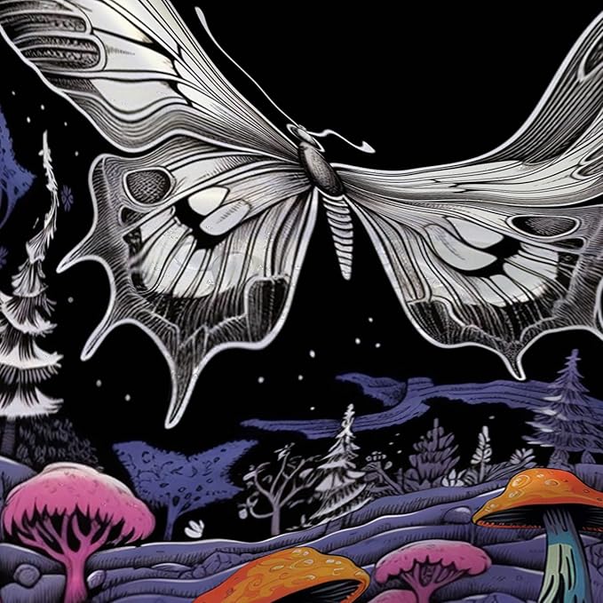AILONEN Moth Shower Curtain for Kids Girls Boys, Boho Sun Moon with Mushroom Shower Curtains for Bathroom,Natural Plants Shower Curtain Set with Hooks,72" W*96" H