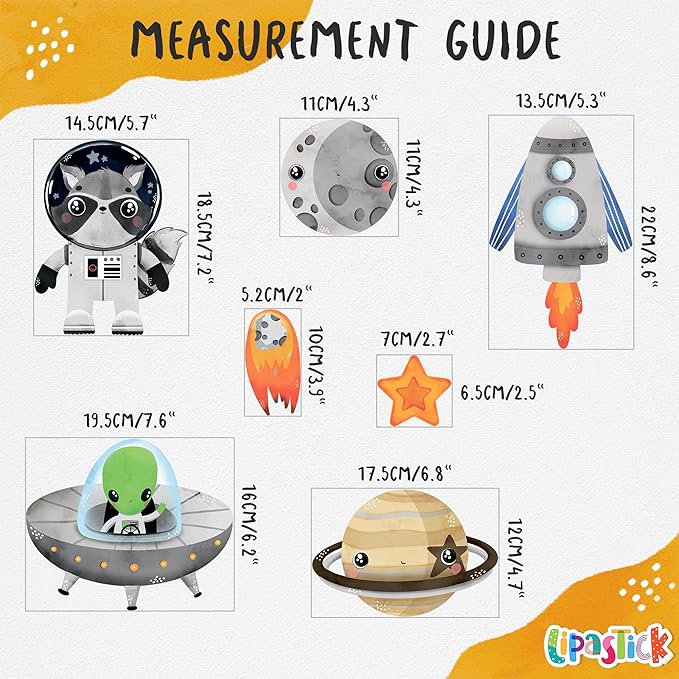 - 🌈 Learn and Play. Play is a way to spend fun time with your baby, place the galaxy stickers decal on the wall together, and learn the name of each item. Every child is full of curiosity, kids wall decals are a great tool to explore the world around them.